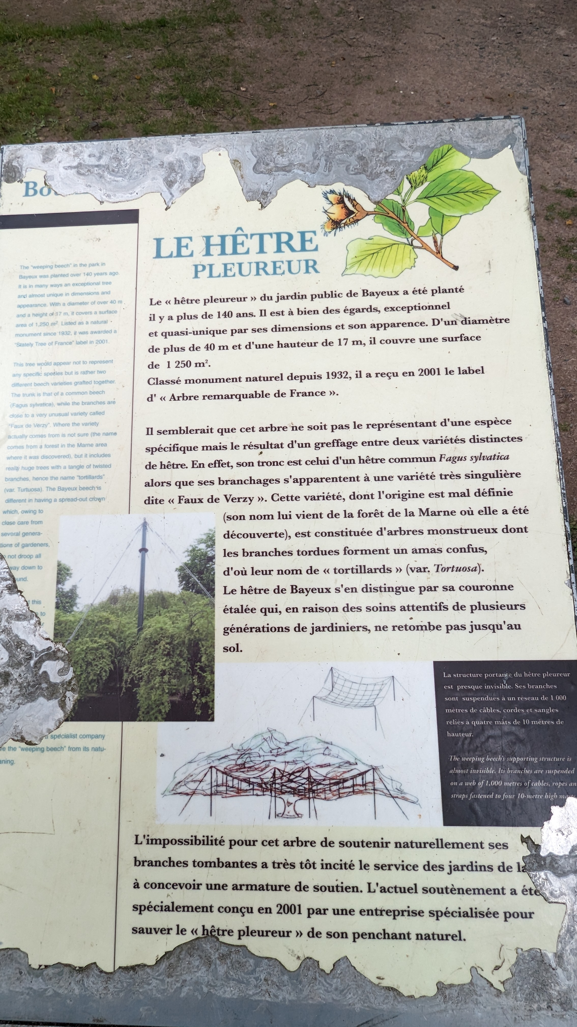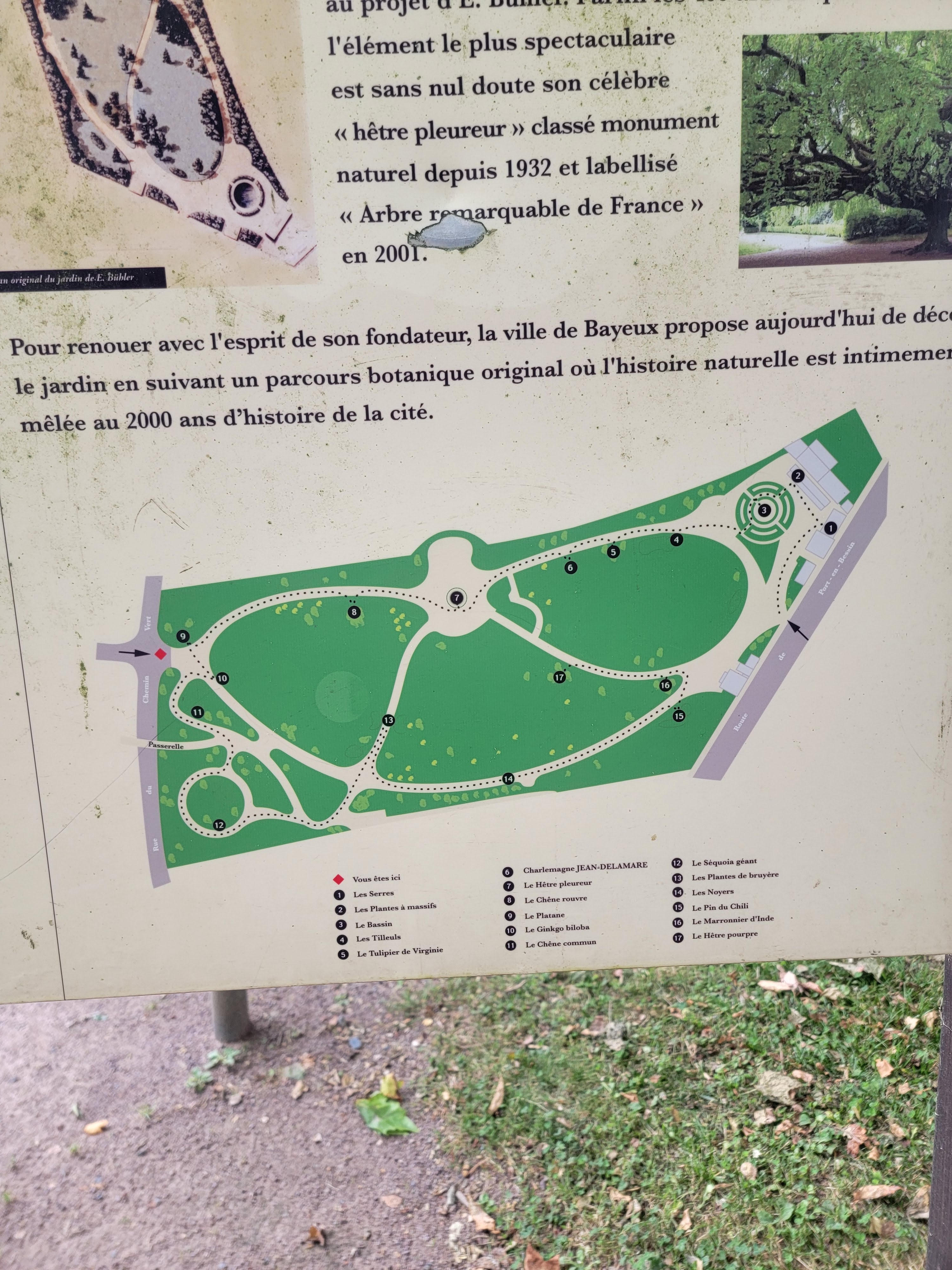 L'hêtre pleureur du jardin botanique est un Monument naturel,classé arbre remarquable,qui aurait l'âge de 150 ans. Il est caractérisé par un tronc d'une circonférence de 3m57 et d'un houppier tortueux d'une envergure de 40m,couvrant une surface de 1250m²,réalisée par un développement non naturel,échafaudé à partir d'une charpente et de mâts métalliques. Une visite à ne pas manquer lors de votre périple à Bayeux.